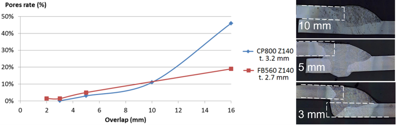 - Introduction of Gaps: A gap greater than 0.3 mm between sheets facilitates vapor extraction during welding, significantly reducing blowhole formation. Controlling the gap between sheets is challenging and costly in automotive assemblies. It may be an adequate solution, when the overlap width cannot be adjusted.